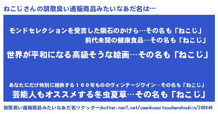 | 意味不明あだ名 | 『ねこじフォーエバー』『自称ねこじ』 |