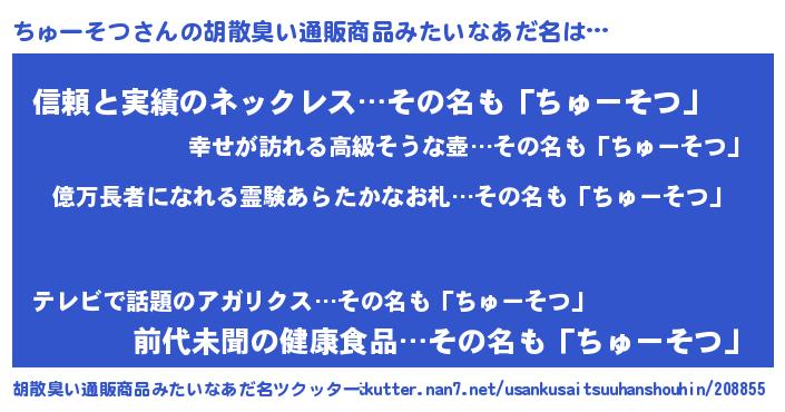 | ヘコむあだ名 | 『ちゅっふぃ~』『ちゅ太郎』 |