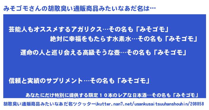| 意味不明あだ名 | 『みそゴモフォーエバー』『自称みそゴモ』 |