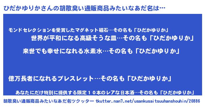 | ヘコむあだ名 | 『ひだかゆりか(遠い目)』『レバニラ』 |
