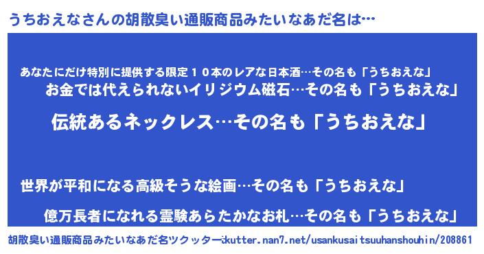 | 恥ずかしいあだ名 | 『ウチリンリン』『プリティーうちおえな』 |