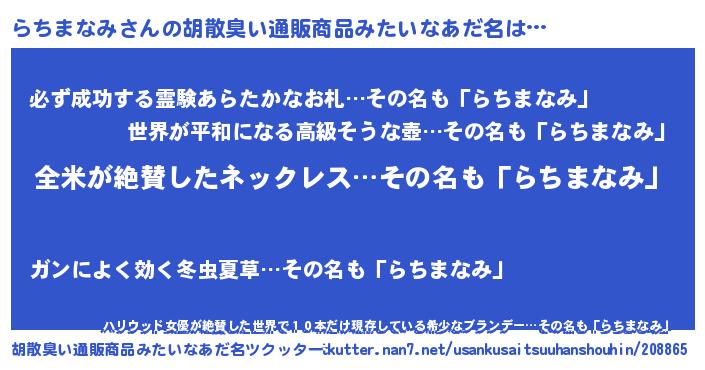 | 男性向けラノベタイトル風あだ名 | 『らちまなみの嫁は女の子じゃないと思った?』 |