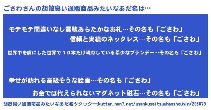 | 意味不明あだ名 | 『住所不定無職ごさわ(84歳)』 |