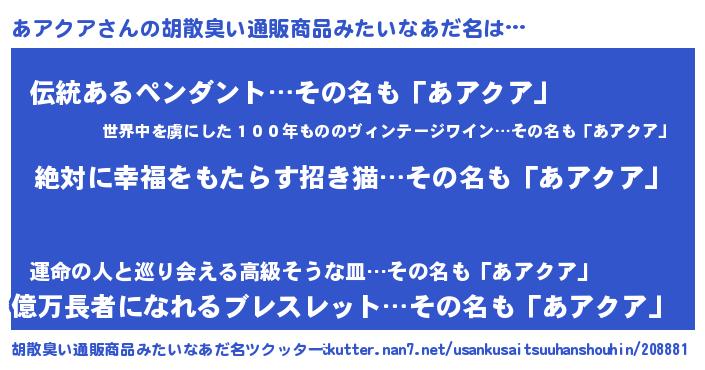| ヘコむあだ名 | 『あアクア(笑)』『あア太郎』 |