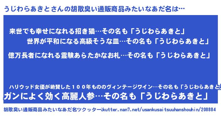 | 男性向けラノベタイトル風あだ名 | 『うじわらあきとに滅ぼされるだけの簡単なお仕事です』 |