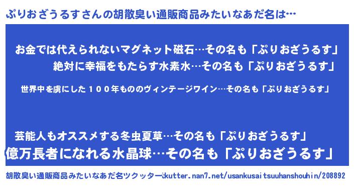 | 意味不明あだ名 | 『住所不定無職ぷりおざうるす(8歳)』 |