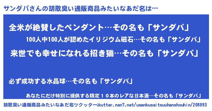 | ヘコむあだ名 | 『サンダバ(小並感)』『サンお』 |