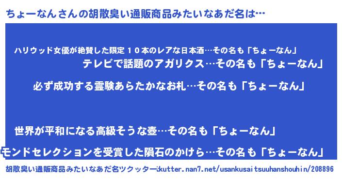 | ヒーロー風カッコイイあだ名 | 『スーパーチョーナン』『仮面チョダー』 |