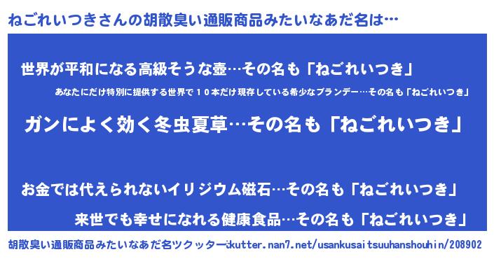 | 意味不明あだ名 | 『自称ねごれいつき』 |