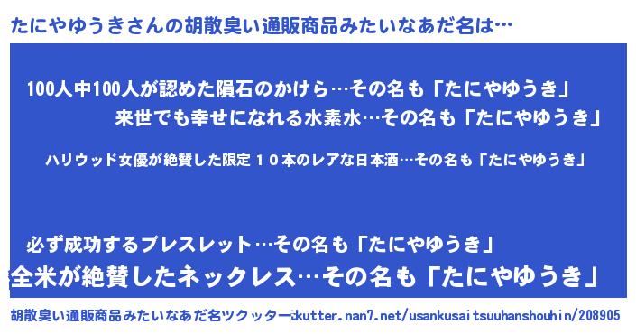| 男性向けラノベタイトル風あだ名 | 『緋弾のタニヤユウキ』 |