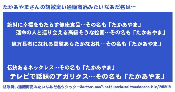| 意味不明あだ名 | 『ペロリンたかあやま』『自称たかあやま』 |
