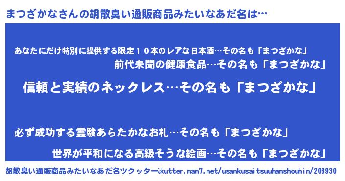 | 意味不明あだ名 | 『とにかく怪しいまつざかな』 |