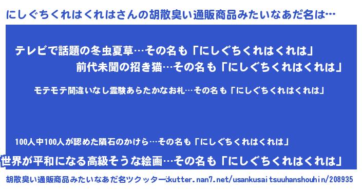 | 欧米人風あだ名 | 『マイケルにしぐちくれはくれは』 |