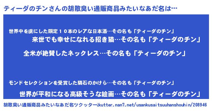 | ヘコむあだ名 | 『ティっ子』『牛乳』『ティにー』 |