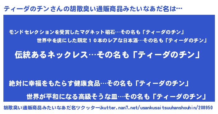| 欧米人風あだ名 | 『ウサインティーダのチン』 |