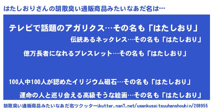 | 恥ずかしいあだ名 | 『プリティーはたしおり』『はたっちょ』 |