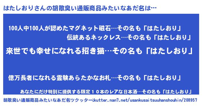 | ヒーロー風カッコイイあだ名 | 『ネオハタシオリ』『仮面ハタダー』 |