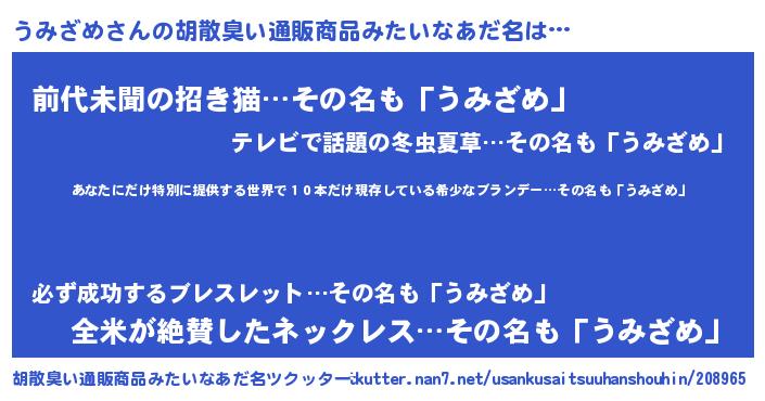 | 意味不明あだ名 | 『住所不定無職うみざめ(85歳)』 |