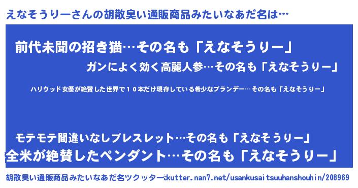 | 伝説のあだ名 | 『聞きしに勝る勇者えなそうりー』 |