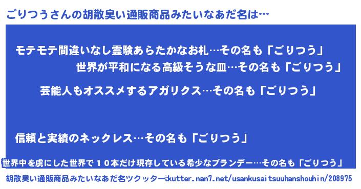 | ヘコむあだ名 | 『ごりにゅー』『なまこ酢』 |