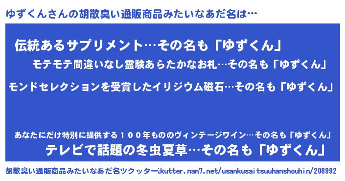 | ヒーロー風カッコイイあだ名 | 『天空の使者ゆずくん』『銀牙騎士ユズ』 |