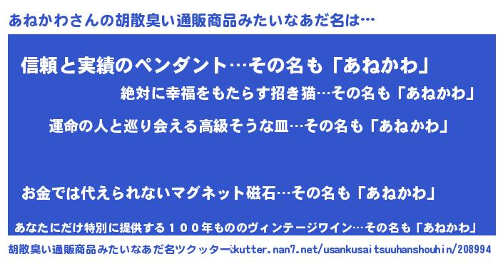 | ポケモン風あだ名 | 『アネカダネ』『ヒアネカワ』 |