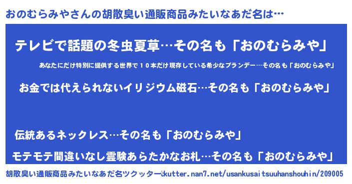 | 伝説のあだ名 | 『魔王と互角に渡り合う占い師おのむらみや』 |