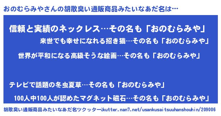 | 意味不明あだ名 | 『おのむらみやフォーエバー』 |