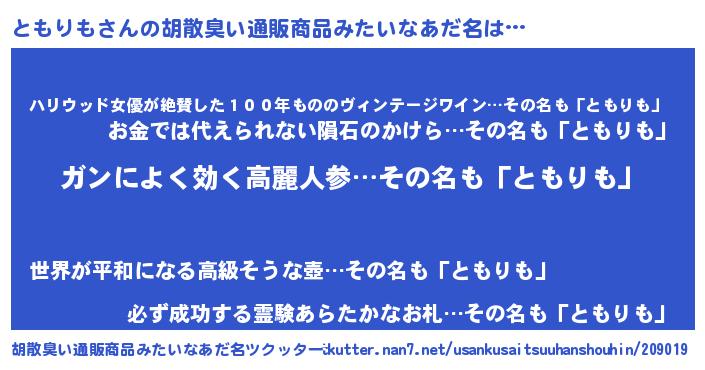 | 意味不明あだ名 | 『自称ともりも』『ペロリンともりも』 |