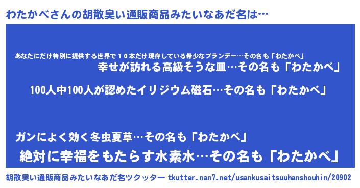 | 意味不明あだ名 | 『眠気覚ましガムわたかべ味』 |