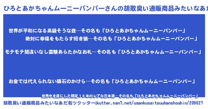 | ヒーロー風カッコイイあだ名 | 『スーパーヒロトアカチャンムーニーパンパー』 |