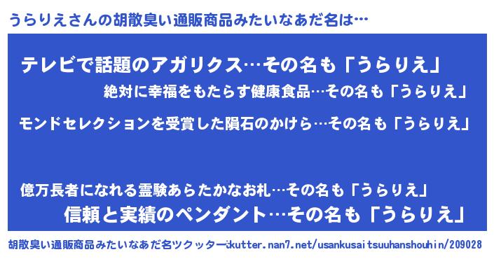 | ヘコむあだ名 | 『うらぷりん』『うらりえ(笑)』 |