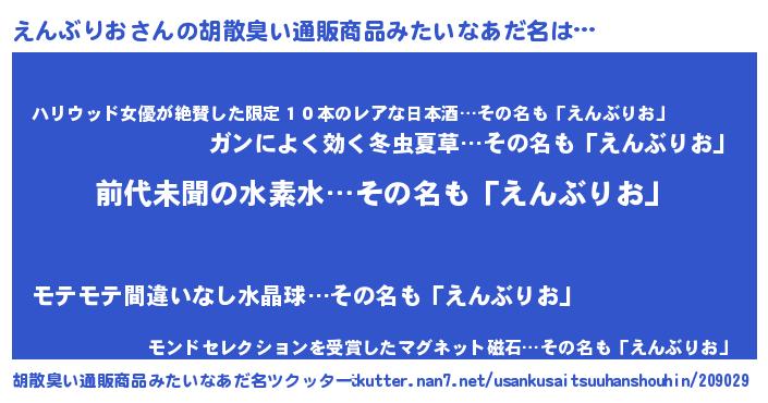 | ヘコむあだ名 | 『えんぶりお(震え声)』『えんにー』 |
