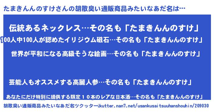 | 欧米人風あだ名 | 『たまきんんのすけクリステル』 |