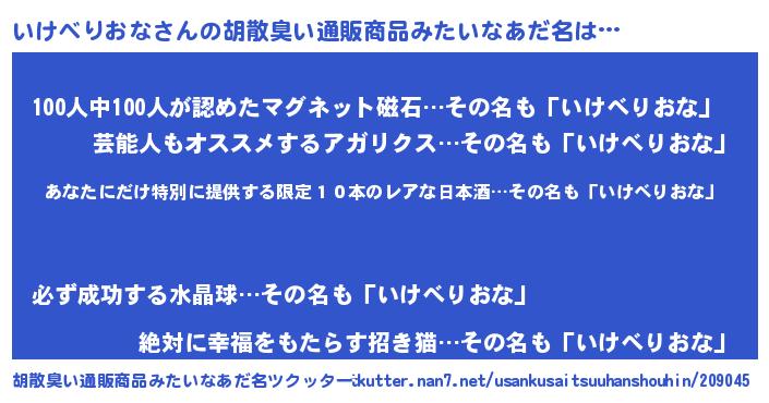 いけべりおなさんの胡散臭い通販商品みたいなあだ名をツクッター!