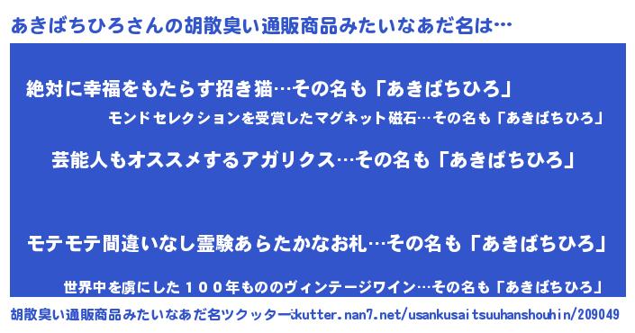 | 伝説のあだ名 | 『古文書に記された暗殺者あきばちひろ』 |