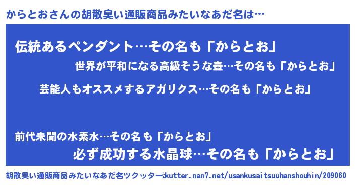 | 肩書あだ名 | 『からとお総統』『からとお機長』 |