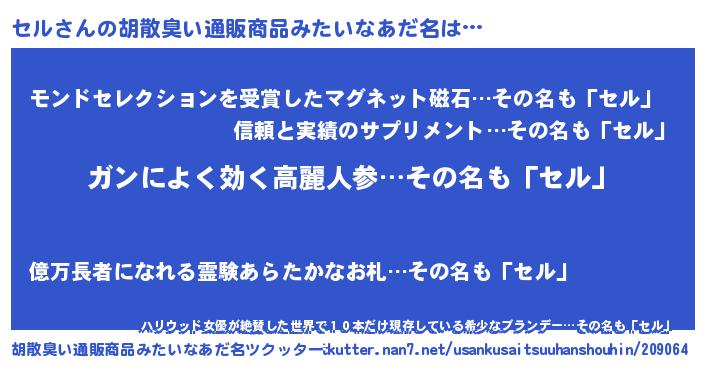 | 意味不明あだ名 | 『自称セル』『眠気覚ましガムセル味』 |
