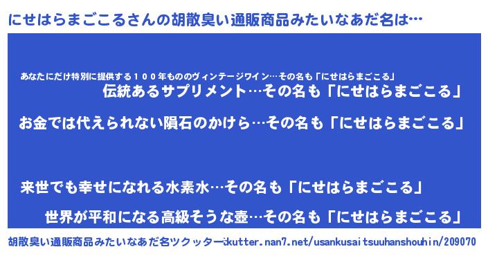 | 男性向けラノベタイトル風あだ名 | 『おまえをオタクにしてやるから、俺をにせはらまごこるにしてくれ! 』 |