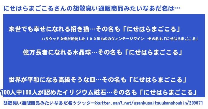 | ヘコむあだ名 | 『にせもー』『にせはらまごこる(小並感)』 |