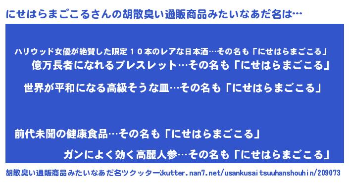 | ヘコむあだ名 | 『なまこ酢』『にせにー』『にせお』 |
