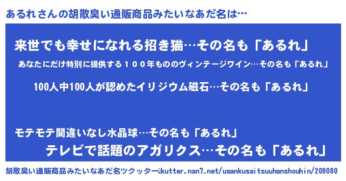 | ヘコむあだ名 | 『あるれ(笑)』『あるふぇ~』『豆乳』 |