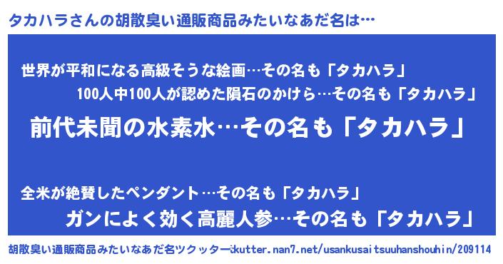 | 意味不明あだ名 | 『永久保存タカハラ』『自称タカハラ』 |