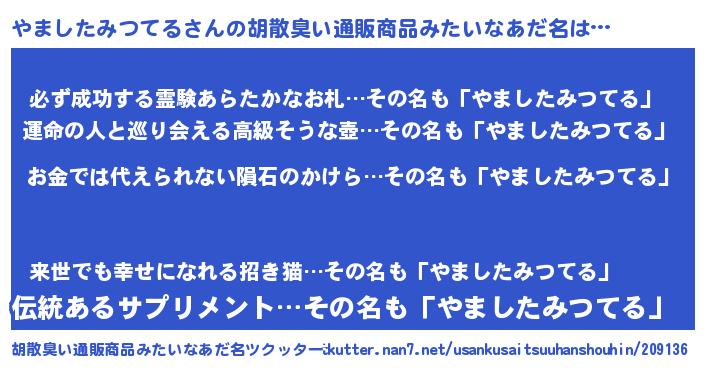 | 女子向けラノベタイトル風あだ名 | 『やましたみつてる恋絵巻』 |
