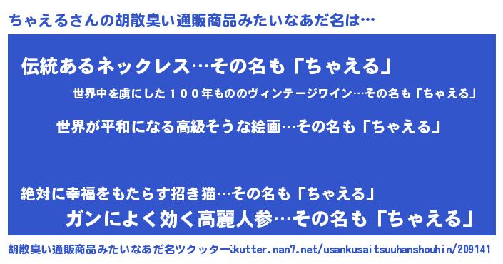 | 欧米人風あだ名 | 『ちゃえるクリステル』 |