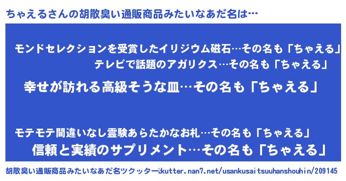 | 意味不明あだ名 | 『ちゃえるフォーエバー』『自称ちゃえる』 |