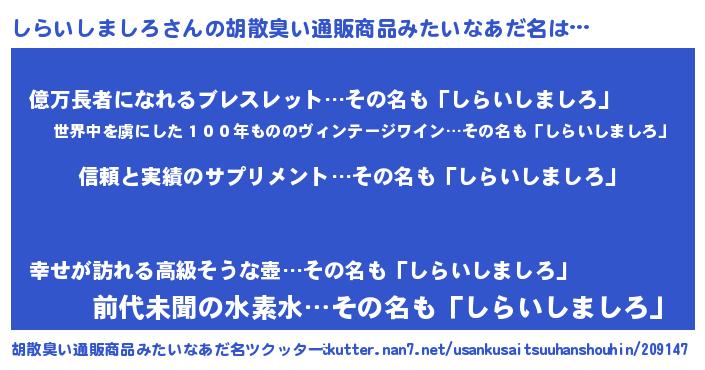 | 意味不明あだ名 | 『とにかく怪しいしらいしましろ』 |