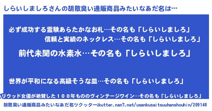 | ヘコむあだ名 | 『しらいしましろ(遠い目)』『しらもー』 |