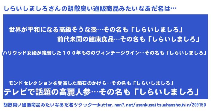 | 欧米人風あだ名 | 『トリンドルしらいしましろ』 |