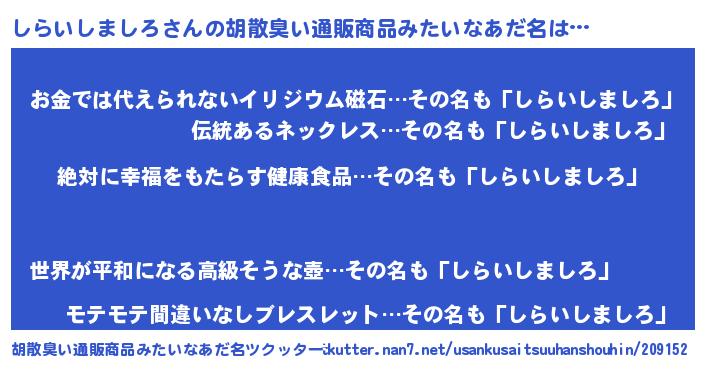 | ヘコむあだ名 | 『しらいしましろ(爆)』『しらもー』 |